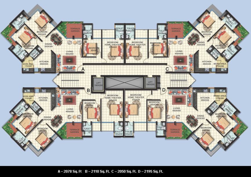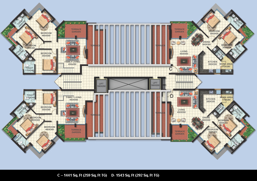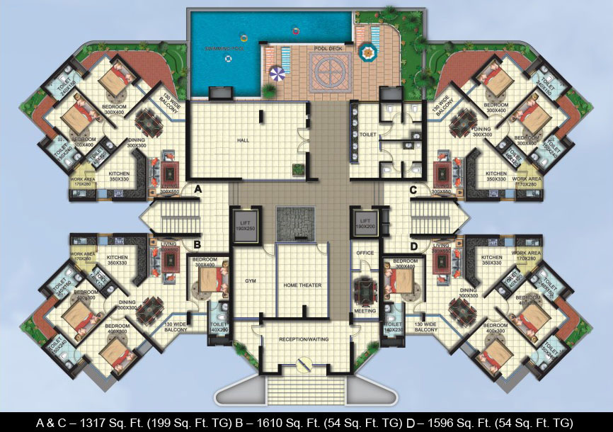 The furniture layout shown is only an indication so space utilization, Dimensions and details provided in the brochure are subject to minor alterations and variations without notices, which shall be purely at the discretion of the builder.