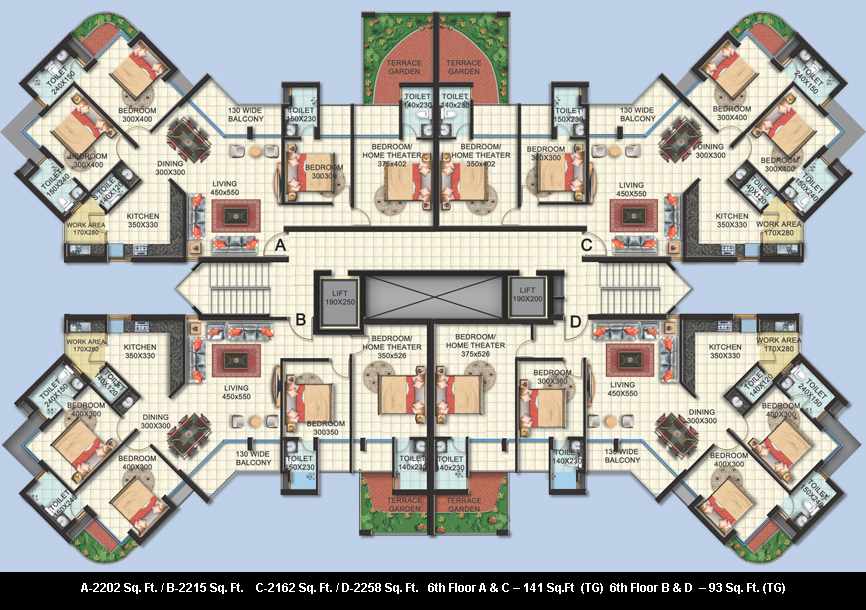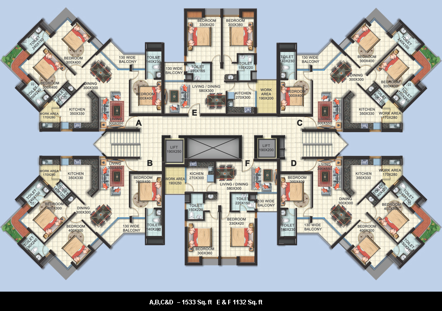 Floor | Type A | Type B | Type C | Type D | Type E | Type F |